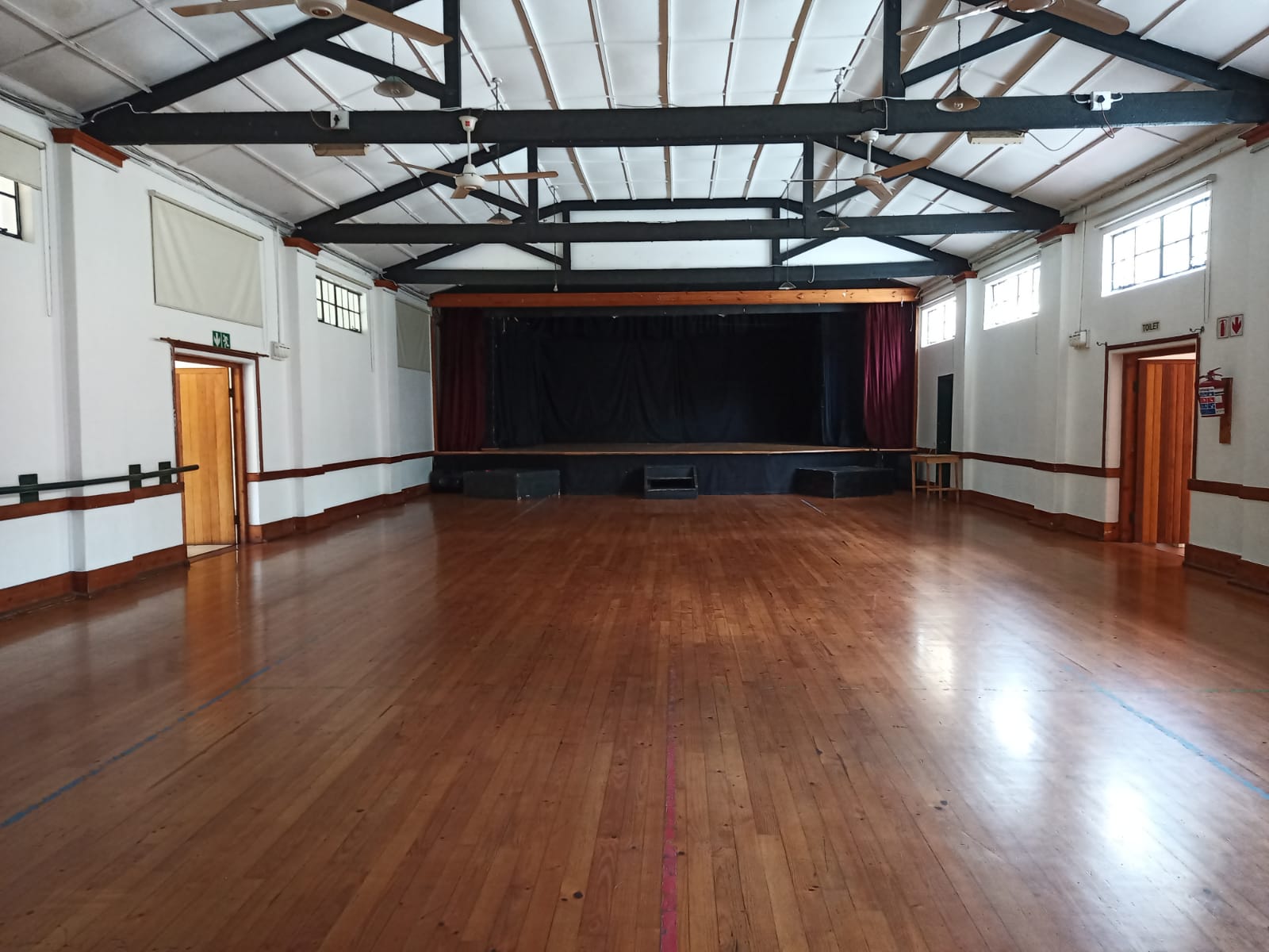 floor space, as well as a stage (6m x3m) with curtains. The wooden floors and pressed